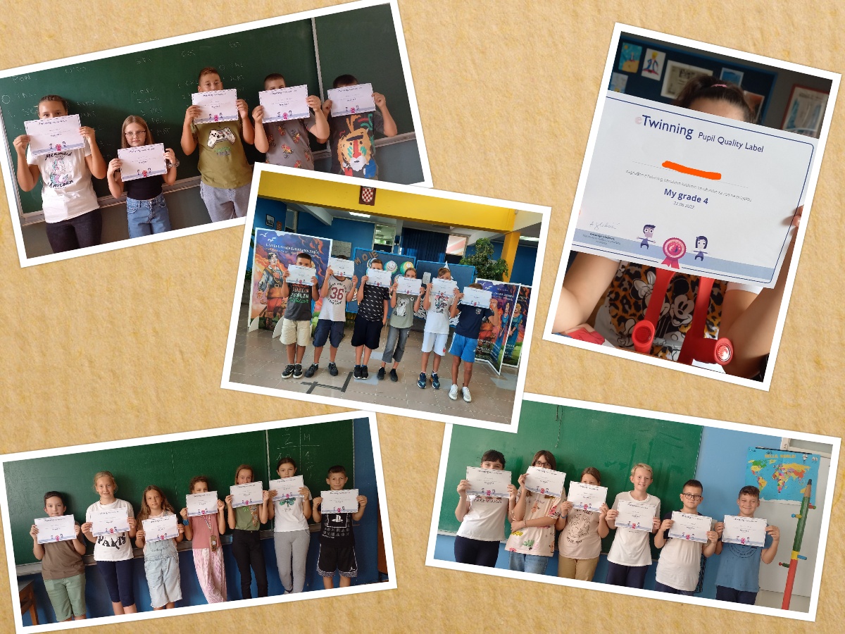 S ponosom objavljujem da sam tijekom prošlog tjedna prošlogodišnjim učenicima 4.a razreda uručila Nacionalne oznake kvalitete za rad na međunarodnom eTwinning projektu My Grade 4 na kojem smo radili u sklopu nastave engleskog jezika. Projekt sam napisala prateći Kurikulum engleskog jezika za 4.razred osnovne škole. Još jednom iskrene čestitke učenicima, vaša teacher Tina Parać
